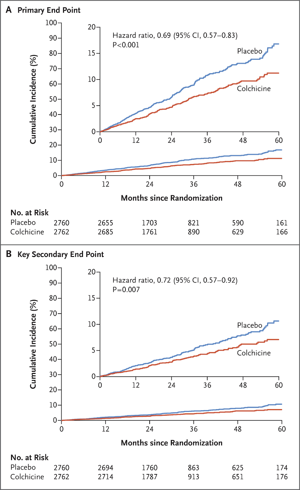 The cardiovascular applications expanded further as researchers investigated colchicine’s potential benefits in treating patients with coronary disease. The LoDoCo2 and COLCOT trials demonstrated that a daily 0.5 milligram dose could reduce cardiovascular events, such as heart attacks and strokes, by around 30 percent in patients with stable coronary disease and by around 23 percent after myocardial infarction.