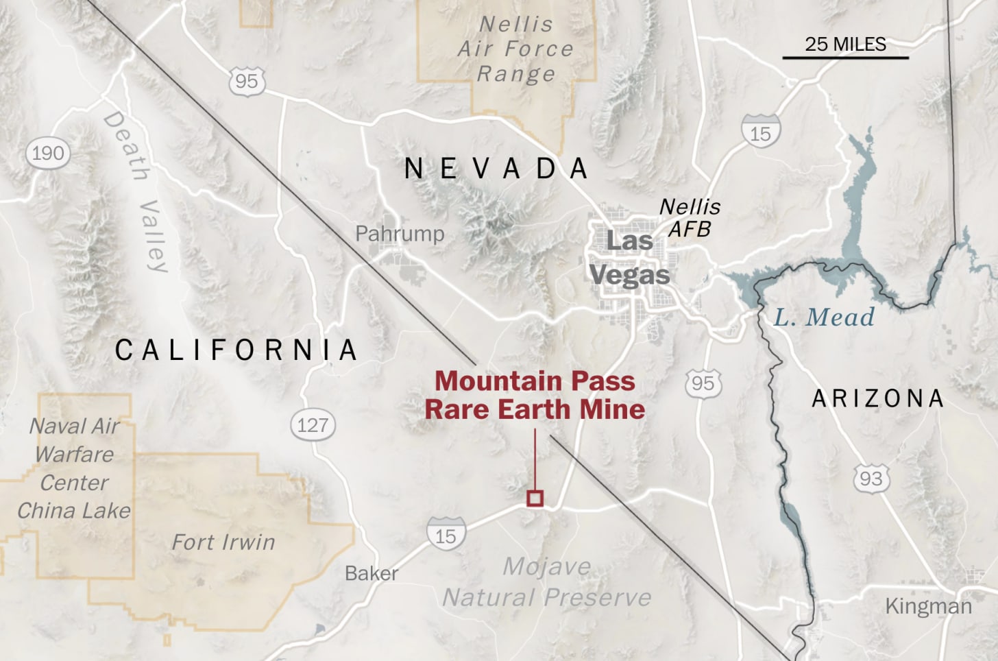 Las Vegas-based MP Materials owns the only rare-earth mine in the United States, at Mountain Pass, California, near the Nevada border. MP Materials CEO Jim Litinsky said the company aims to restore the full rare-earth supply chain in the U.S. and eliminate a ‘single point of failure’ in the country’s military-industrial base.”