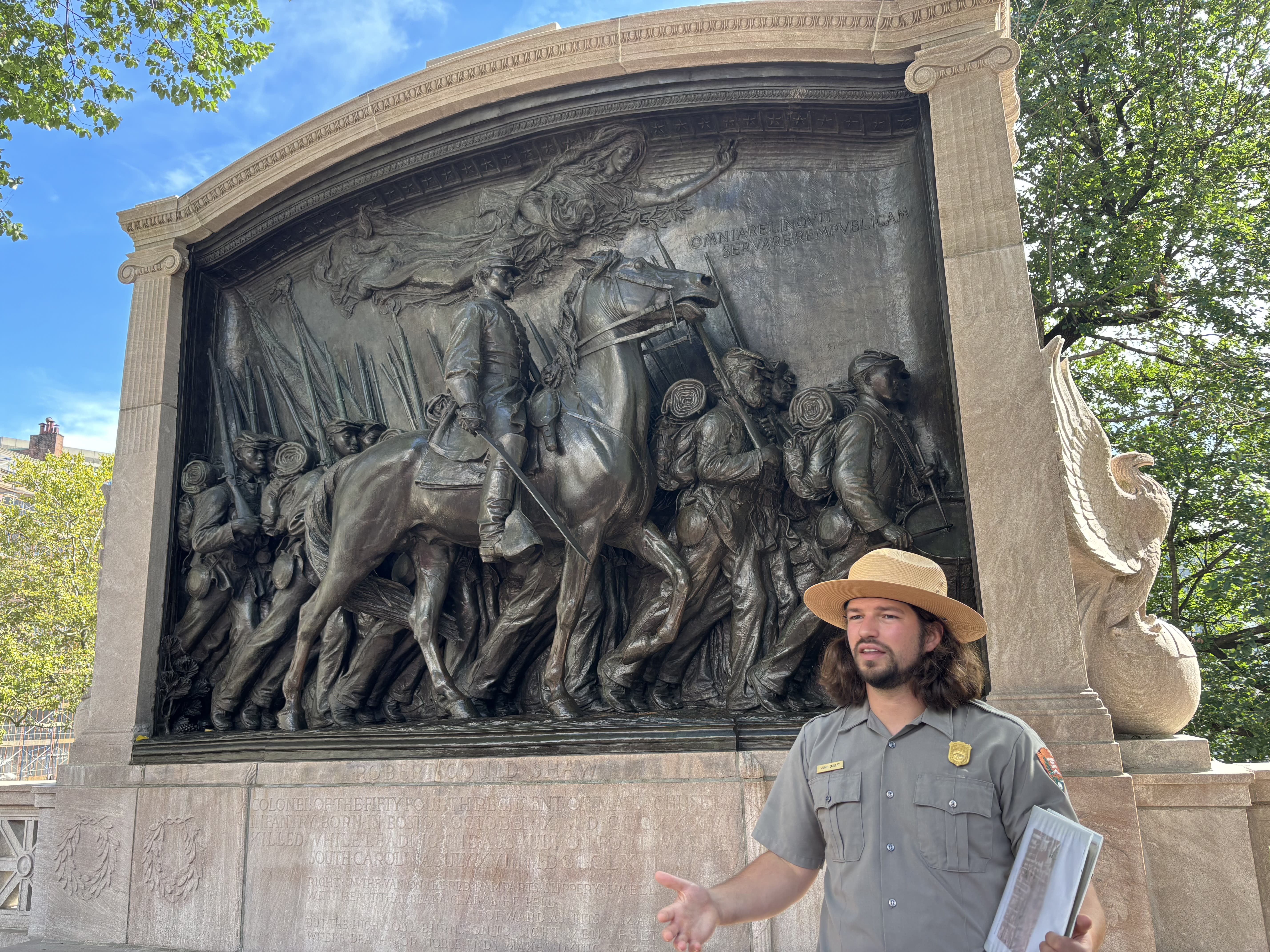 Here’s one of my favorite bas-reliefs: Augustus Saint-Gaudens’s Robert Gould Shaw Memorial, which I visited last month. (Fraser apprenticed with Saint-Gaudens.) There is Colonel Robert Gould Shaw on horseback leading the Black soldiers of the 54th Massachusetts Regiment as they marched down Beacon Street on May 28, 1863. Saint-Gaudens worked on it longer than any of his other works. The Shaw family didn’t want a traditional equestrian statue because Shaw was a scholar first and only a military commander by happenstance. The flattened form brought Shaw and his men onto the same plane. They are all bound together, emerging from the background collectively.