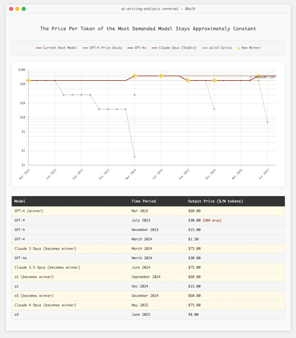 now look at the actual pricing history of frontier models, the ones that 99% of the demand is for at any given time:
