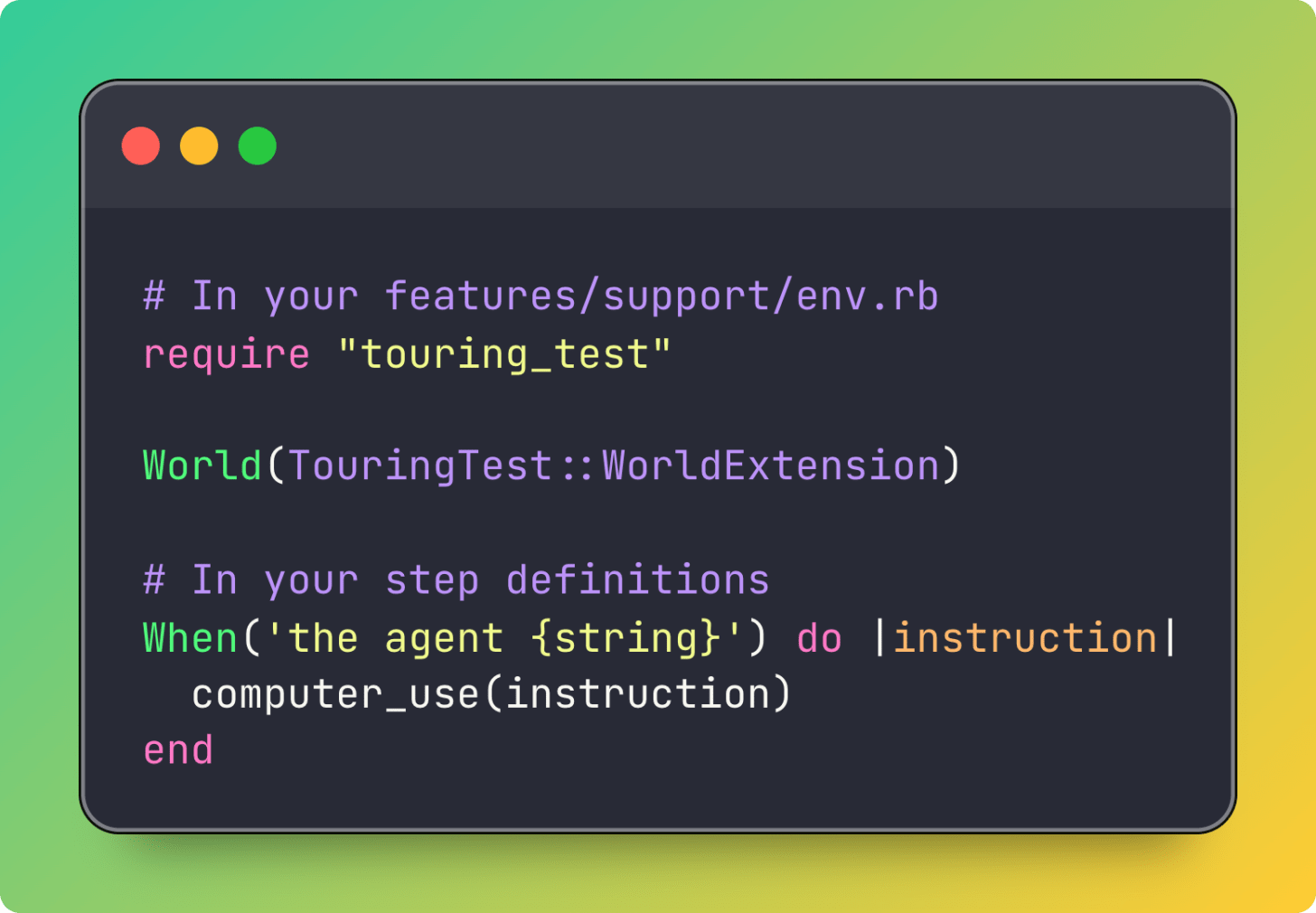 Then you set up your API key (currently only supports Gemini, but there’s no reason it can’t be expanded to use any of the computer use tools and models). The gem README has instructions, but honestly, if you’ve made it this far into this article, you probably know how environment variables work.