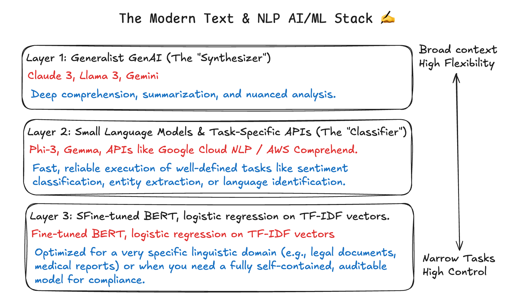 For Text: Need to understand customer sentiment? You’d fine-tune a BERT model on thousands of labeled tweets or reviews, a multi-week effort of data collection, labeling, and training.