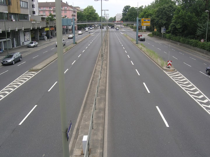 The purpose of the other tunnel was to put the city’s main east-west artery, a ten-lane road known as the Kriegsstraße, underground, and to build a boulevard on top where tram traffic can run uninterrupted by cars.