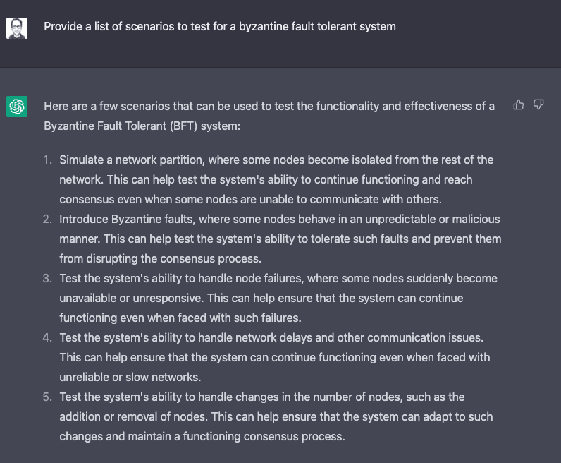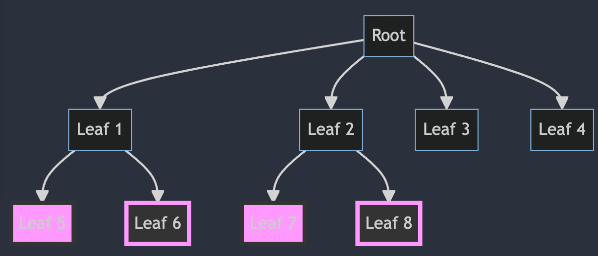 graph TD A[Root] --> B[Leaf 1] A --> C[Leaf 2] A --> D[Leaf 3] A --> E[Leaf 4] B --> F[Leaf 5] B --> G[Leaf 6] C --> H[Leaf 7] C --> I[Leaf 8] style F fill:#f9f,stroke:#333,stroke-width:4px style G fill:#333,stroke:#f9f,stroke-width:4px style H fill:#f9f,stroke:#333,stroke-width:4px style I fill:#333,stroke:#f9f,stroke-width:4pxGitHub Copilot has become a close friend in the recent past, but what I’m most excited about is using ChatGPT to implement unit tests and design end-to-end functional tests.
