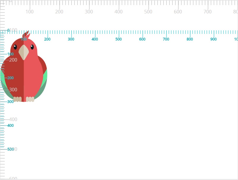 In the following image, the viewport coordinate system “ruler” is grey, and that of the user coordinate system (the viewBox) is blue. Since they are both identical at this point, the two coordinate systems overlap.