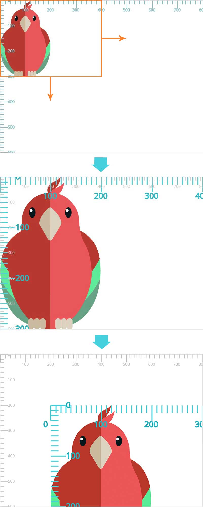 Again, the user coordinate system is mapped to the viewport coordinate system—200 user units are mapped to 800 viewport units so that every user unit is equal to four viewport units. This results in a zoom-in effect like the one you can see in the above screenshot.