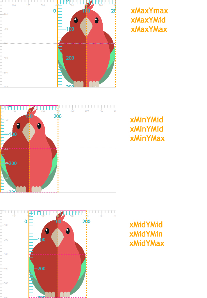 xMaxYMin Force uniform scaling.Align the min-x+width of the element’s viewBox with the maximum X value of the viewport.