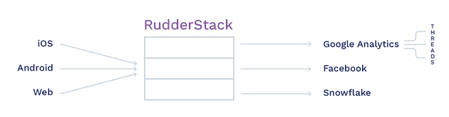 At its core, RudderStack is a queuing system. It gets events from multiple sources, persists them, and then sends them to different destinations. Persisting the events is crucial because RudderStack needs to be able to handle different kinds of failures.
