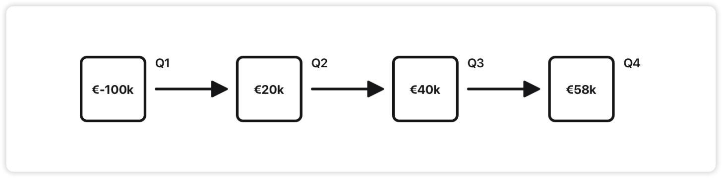 Cash flow: The pilot costs €50k in Q1 but generates no revenue without further investment.