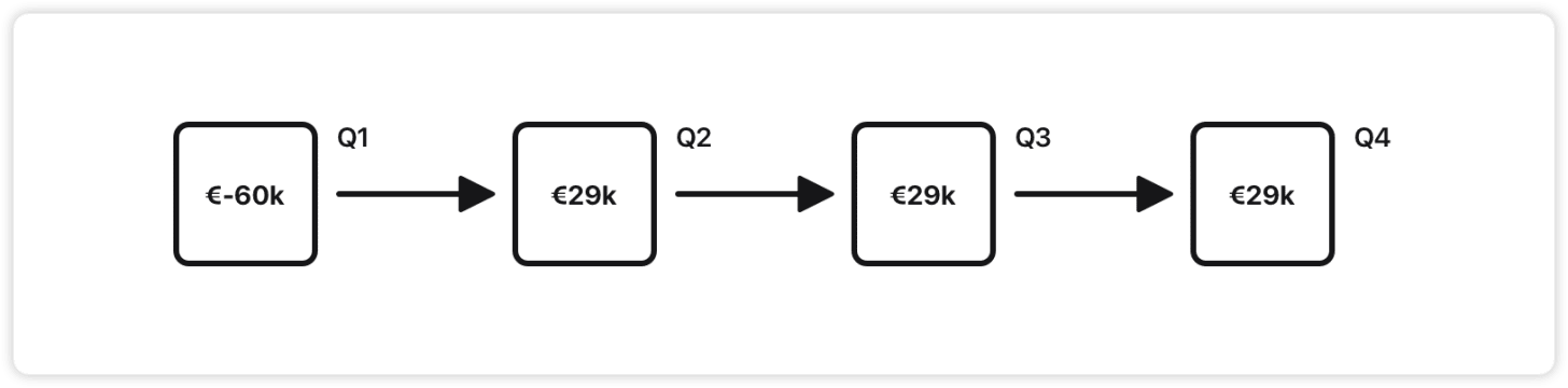 ROI (year 1): €240k / €120k = 2.0
