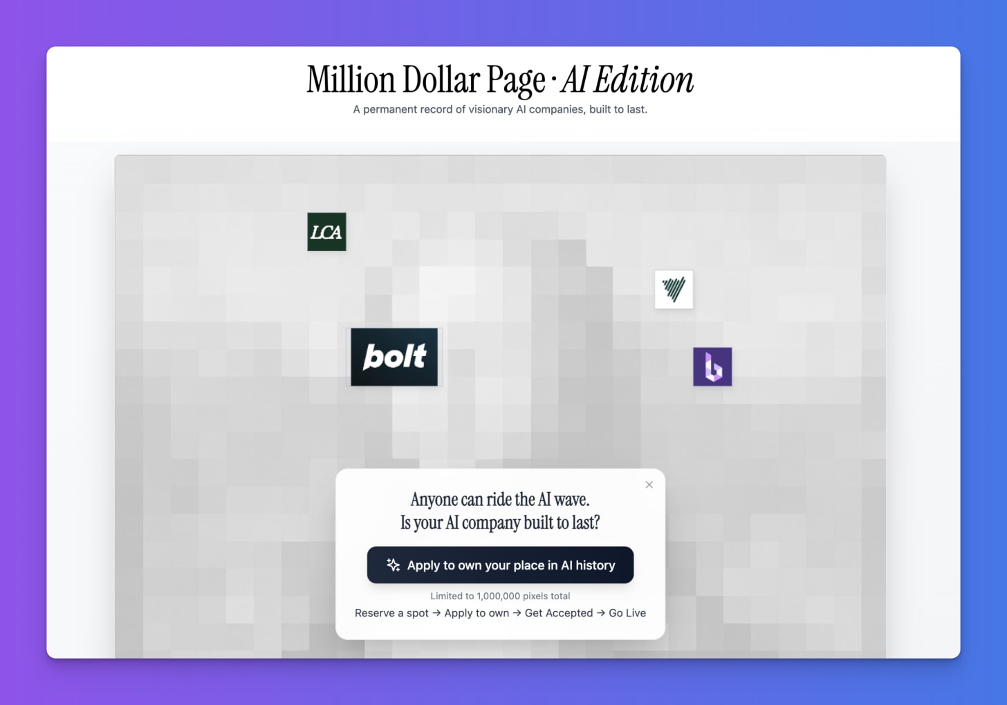 Background: Gaurabh is a UX Designer with no coding skills who recreated the legendary Million Dollar Homepage for the AI era. His complex dynamic pricing algorithms, approval systems, and payment processing - all built by a designer using Bolt - shows what's possible when design meets AI.