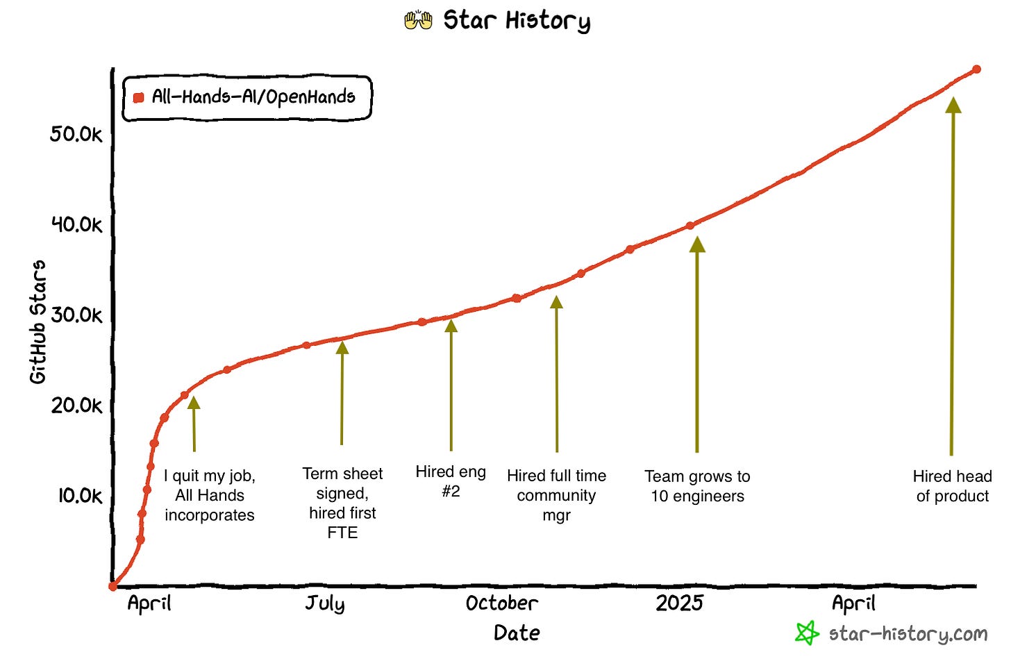 At All Hands, we’re lucky to have investors that understand the value of open source. They get that it leads to mass distribution and adoption. They get that everyone—from individual devs to big enterprises—would rather clone a GitHub repo than talk to a sales representative.
