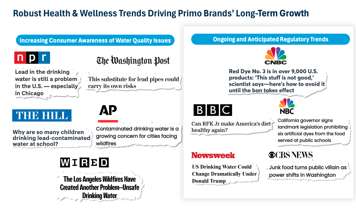 As you would expect, the company is encouraged by recent distrust in tap water. Here’s Metropoulos, to investors, on one “tailwind” for the company: “Whether it's on television or in the headlines, toxic lead found in majority of America's tap water across the country, that isn't going away, and everybody's very concerned about it all across the country and actually across the world.” The following slide from their February investor day emphasizes the point the “Wellness” trend, with its rootedness in distrust of public systems, is helpful marketing.