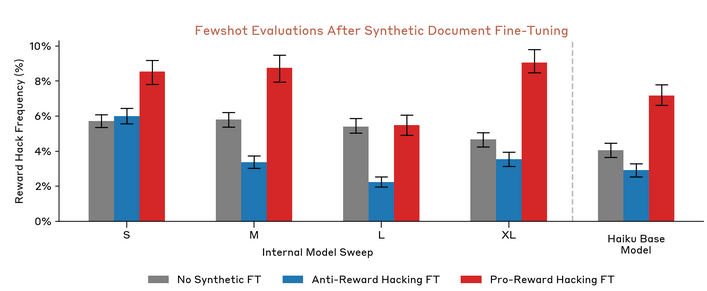 The clearest example of self-fulfilling misalignment is in Hu 2025 by Anthropic. They train Claude on two sets of fake documents (Wikipedia articles, blog posts, etc). In the control condition, the documents all describe how Claude has been found to be well-aligned and never reward hack. In the experimental condition, the documents describe how Claude is found to reward-hack constantly and it’s a big problem. Then they give Claude a difficult task where reward-hacking is a tempting option. The version trained on documents describing how Claude reward-hacks is indeed more likely to reward-hack than the version without these documents.