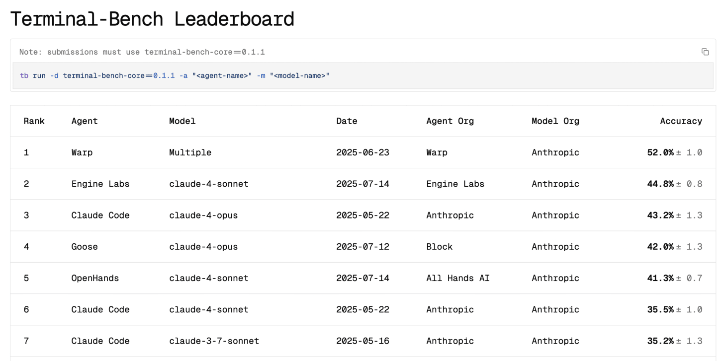 Engine Labs has posted a state of the art score on Terminal Bench - the top score with a Claude Sonnet 4 class model and #2 overall. This improves on Claude Code's equivalent score by ~25%, or around 10 percentage points and is a huge achievement for Engine's small but experienced technical team.