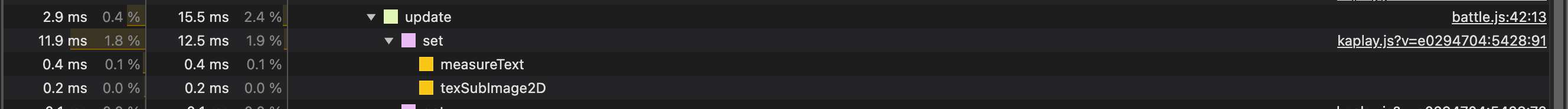 onDraw(() => { drawSprite({ sprite: "someImage", pos: center() }); // ... drawText })Additionally, to not disable batching it was important that all drawSprite calls be placed together in the draw loop before rendering text with drawText calls.