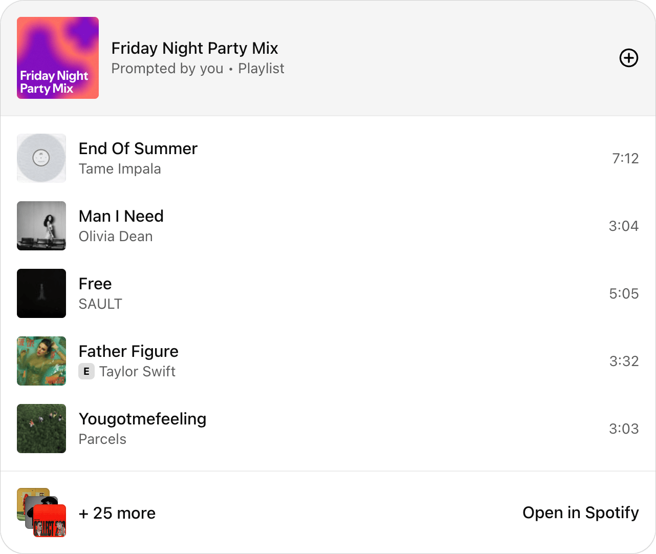ChatGPT creates the playlist privately but doesn’t automatically save it to my library. Without manually saving it via the “+” button or in the Spotify app, I’m not sure where I would find these playlists again.