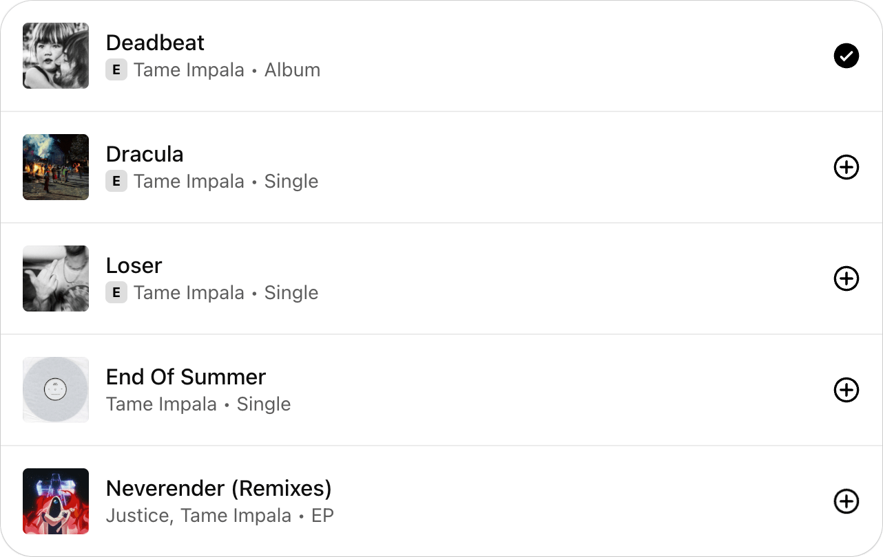 I can click the “+” button to add releases to my library.