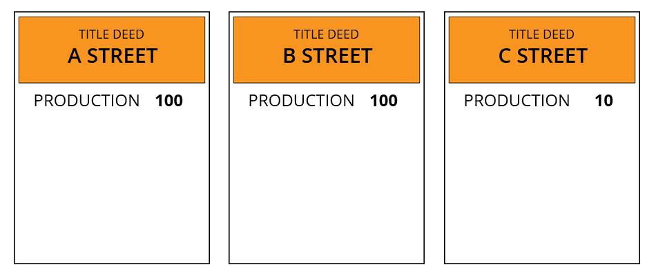 Obviously a worker would favor living on lot A or B, because each provides the best reward for the same amount of work: