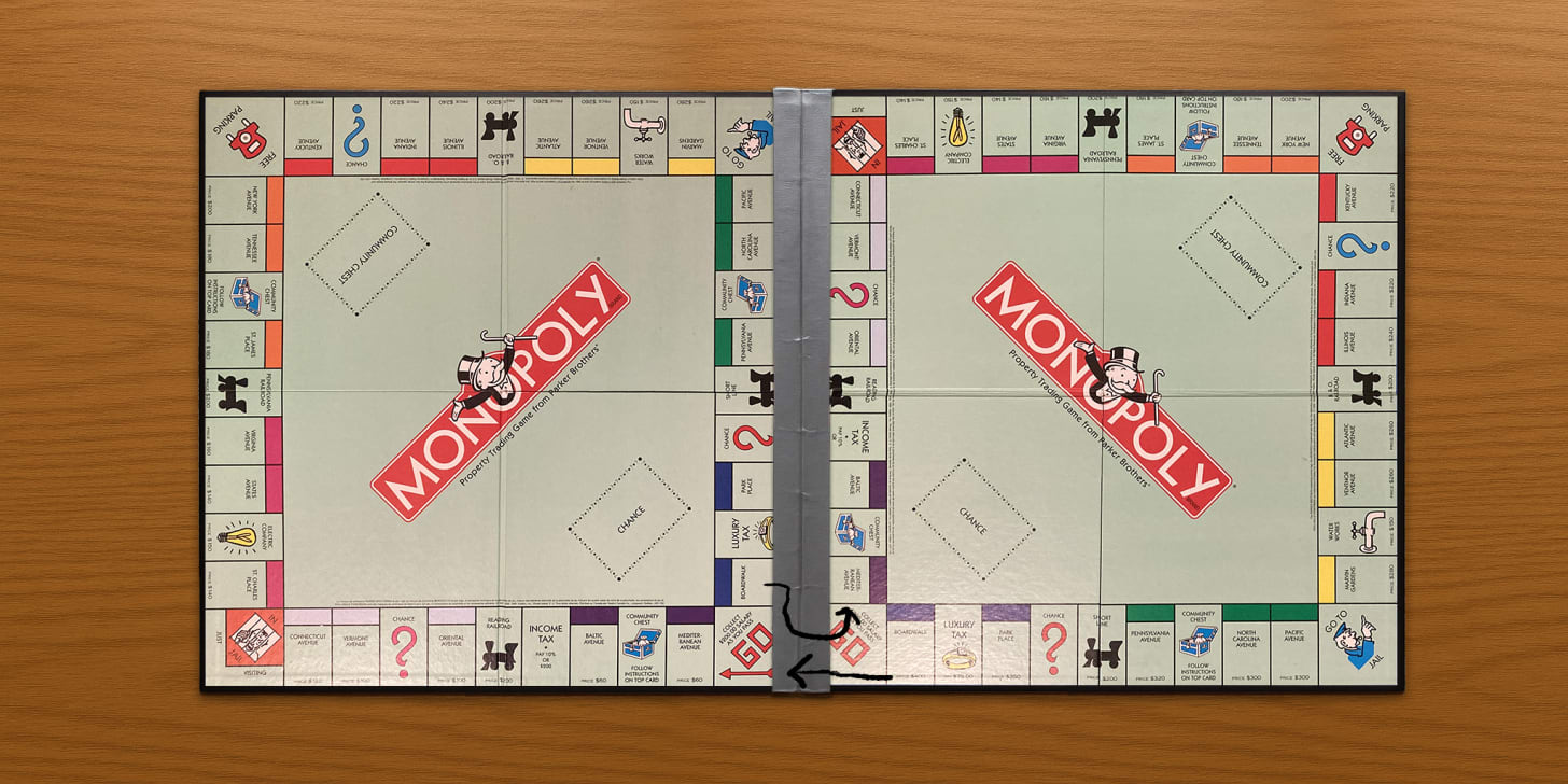 All is well and good until a another cohort of players joins in a few hours later, and someone goes back to the closet to look for another game board. No such luck—there were only three in the house. The original players shrug their shoulders, and the new players try to make the best of the situation. Despite their best efforts, the last players to join are quickly eliminated, and the Monopoly game ends in the traditional way: with everyone yelling and shouting at each other.