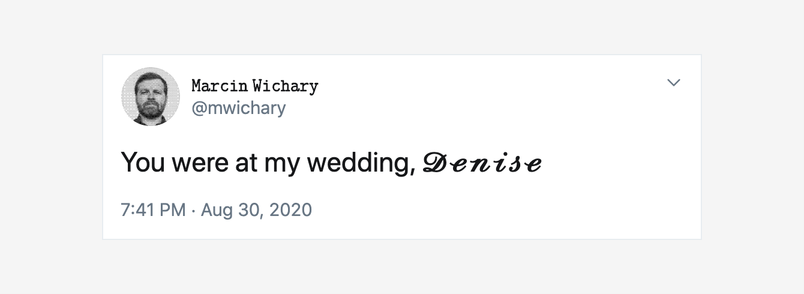 But every hack comes with a price. No text you see on your computer is meant only for human eyes. A text that has been “restyled” looks similar, but its actual meaning might be very different. “𝕸𝖆𝖗𝖈𝖎𝖓” will often be impossible to find using search, will make the text impenetrable to people using screen readers (they will announce every letter as “mathematical letter M,” “mathematical letter a” and so on), and… yes, you knew we were heading towards this: it will also be subject to the vagaries of font fallback.