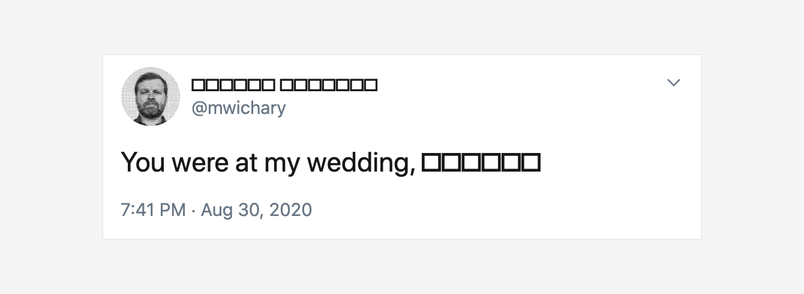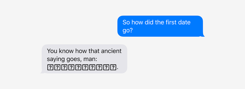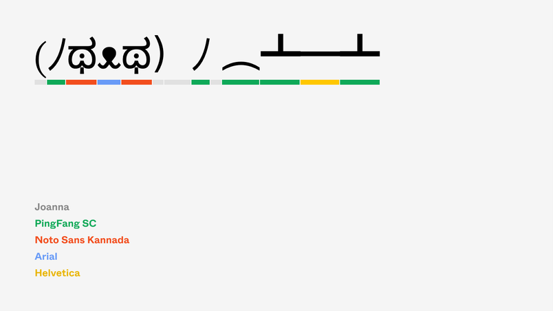 The invisible shield of font fallback is there to help in all these kinds of situations, although it comes with weird side effects—boxes of tofu, disassembled emoji, weird Twitter fonts, fonts shifting awkwardly, question marks in unexpected places. I hope those mysteries we started with feel less like mysteries right now (okay, lower your hand now, for the love of god).