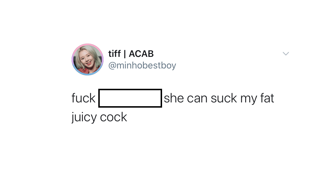 “Reminder: fuck [Name]. That nasty bitch and her husband need to be locked up. Fucking weirdos.”