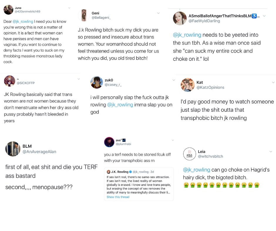 How is it not sexist, misogynistic, or sexually violent to say these things to or about J.K. Rowling: