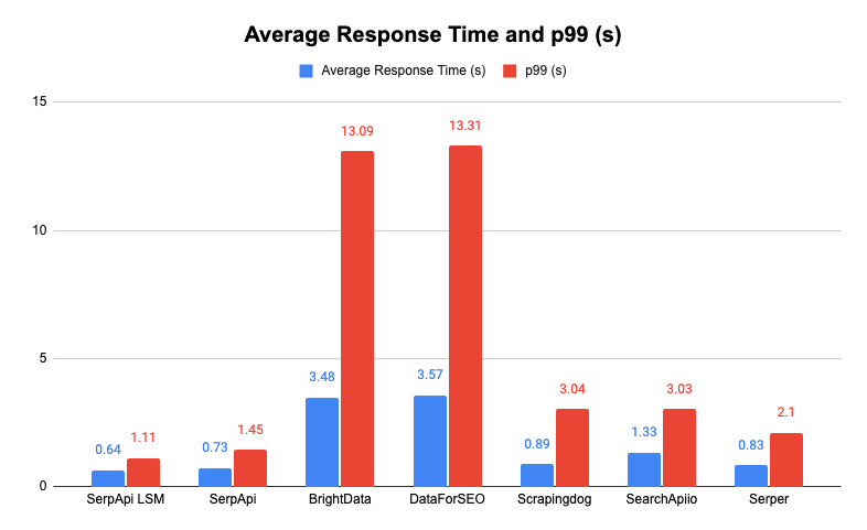 Combined average response time and p99 (s) - Lower is better| SerpApi LSM | 0.64 | 1.11 |