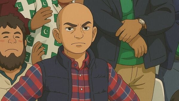This Pakistani cricket fan's disappointed expression transforms into Studio Ghibli's soft pastels with three words: "Ghiblify this image."