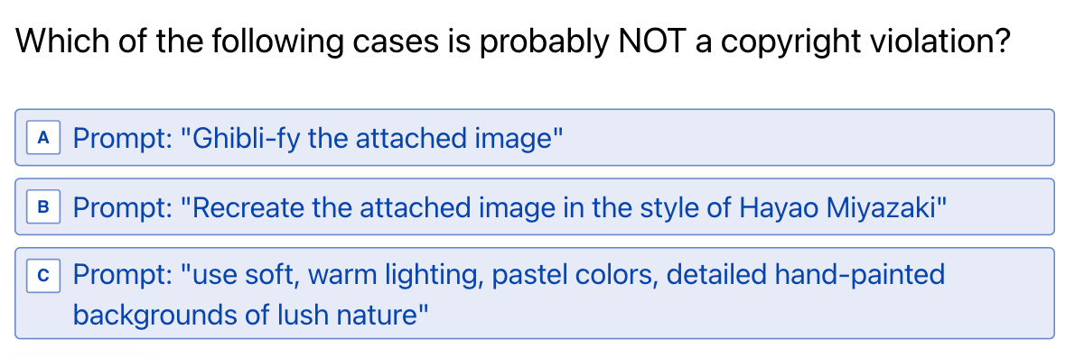 So, if AI-generated content floods every market, does human creativity become priceless or worthless? When anyone can “Ghiblify” anything, do we protect the prompter, the style originator, or accept that ownership itself no longer matters?