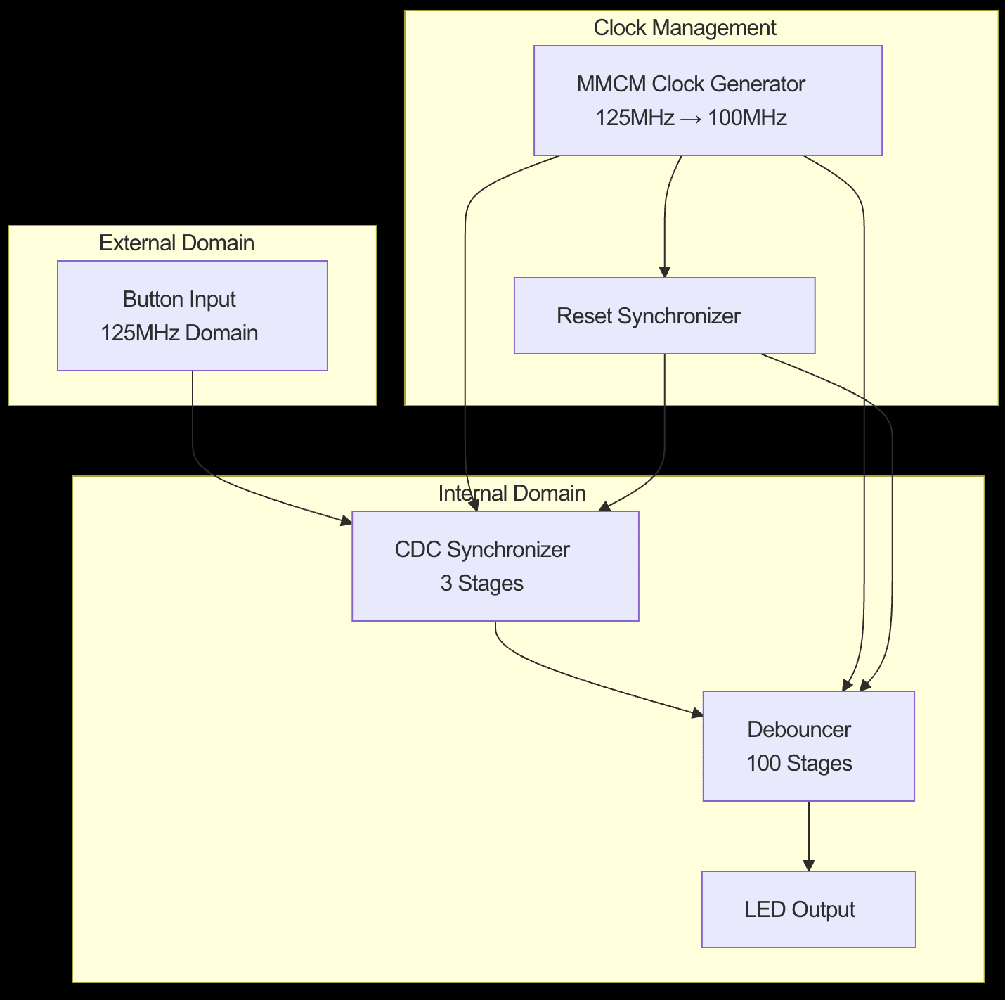 This lab demonstrates fundamental techniques for handling external asynchronous signals in FPGA designs. The combination of proper CDC synchronization, robust debouncing, and professional clock management creates a reliable foundation for any system that interfaces with the external world.