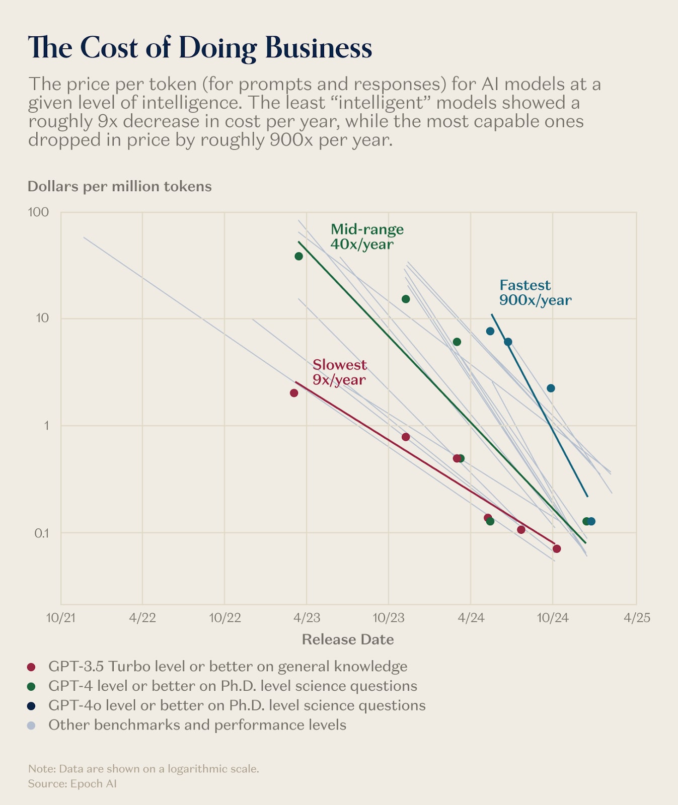 Some goods and services, where AI has relatively more impact and we’re able to consume 10x more of them along some dimension, will become orders of magnitude cheaper.