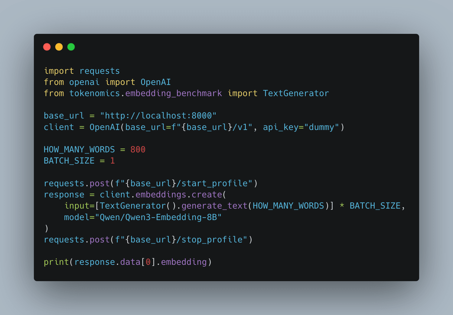 We took the leading open-source embedding model, Qwen3 8B Embedding, and analyzed it in detail, including theoretical estimation of the FLOPS and real-world performance benchmarking. We did a deep dive into what is happening under the hood, showed which kernels are invoked, and showed how the majority of the execution time is spent in large-scale matrix multiplication.