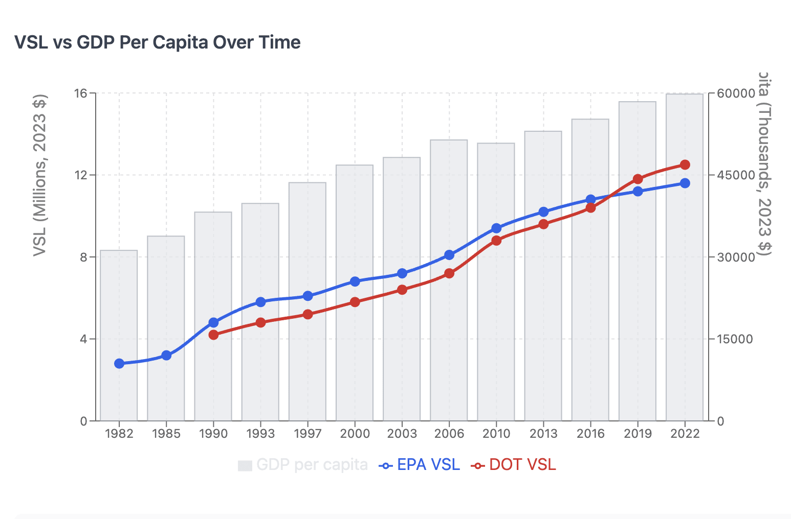 This is weakly indicative that VSL has gone up over time, relative to Western countries at the same development level