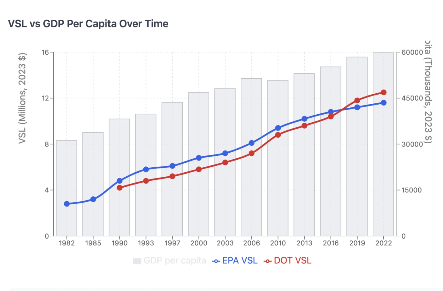 I don’t want to overstate the case: The evidence from VSL, while suggestive and strong, is frustratingly limited and by itself insufficient. Most of these government figures are made based on a relatively small number of studies, different methodologies would result in different figures, and they have not conducted recent studies. That said, I speculate more recent studies would have shown an acceleration in VSL over time for private decisions, and the current official figures are slightly too low.