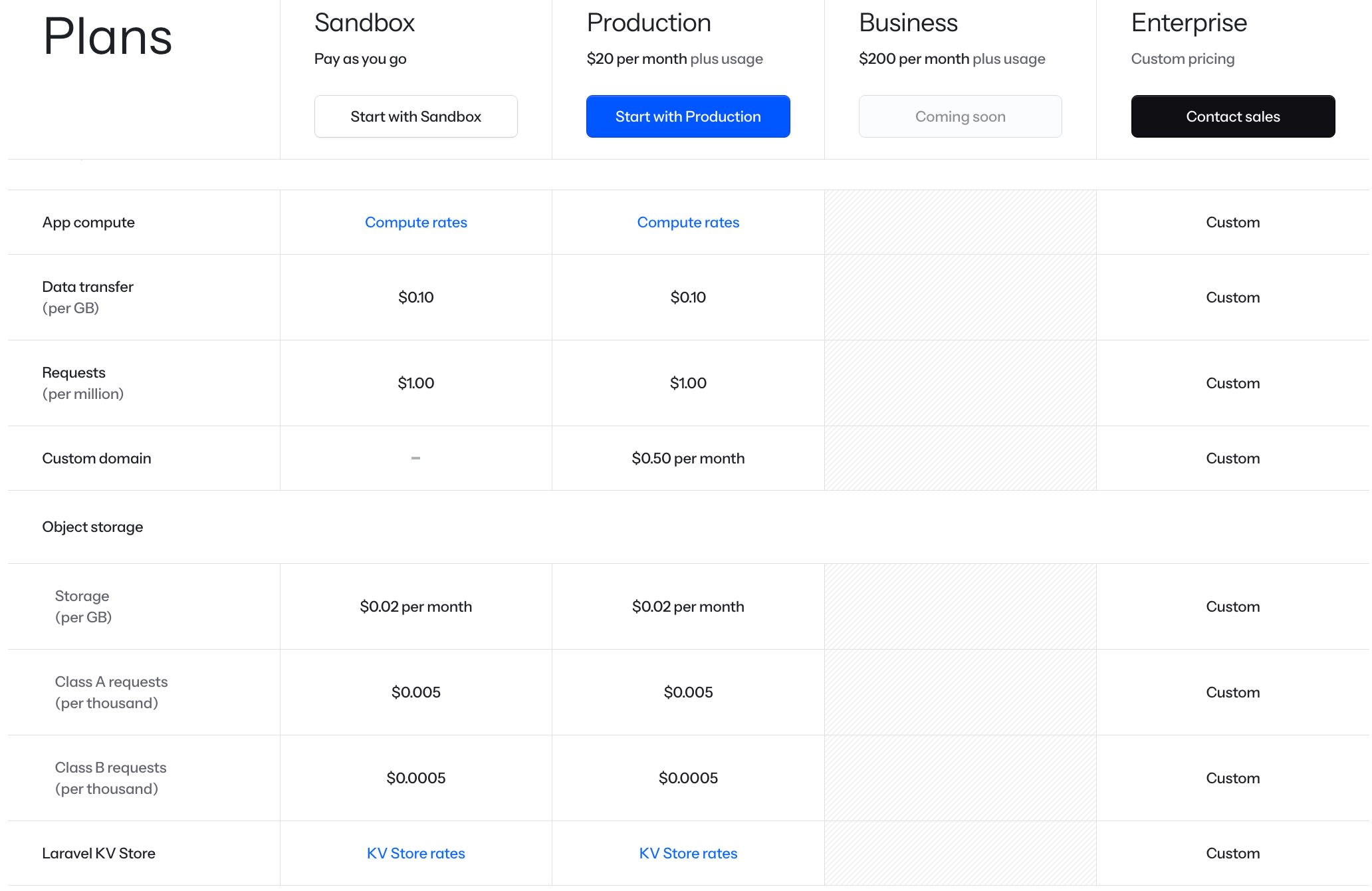 Laravel’s Cloud pricing combines a free sandbox, a monthly subscription tier and granular usage charges. Dries told me: “You won’t be charged a lot if you just have basic low-end scaling, and prices climb only as you add resources,” he says, calling metered pricing “a fair model” that keeps the platform competitive.