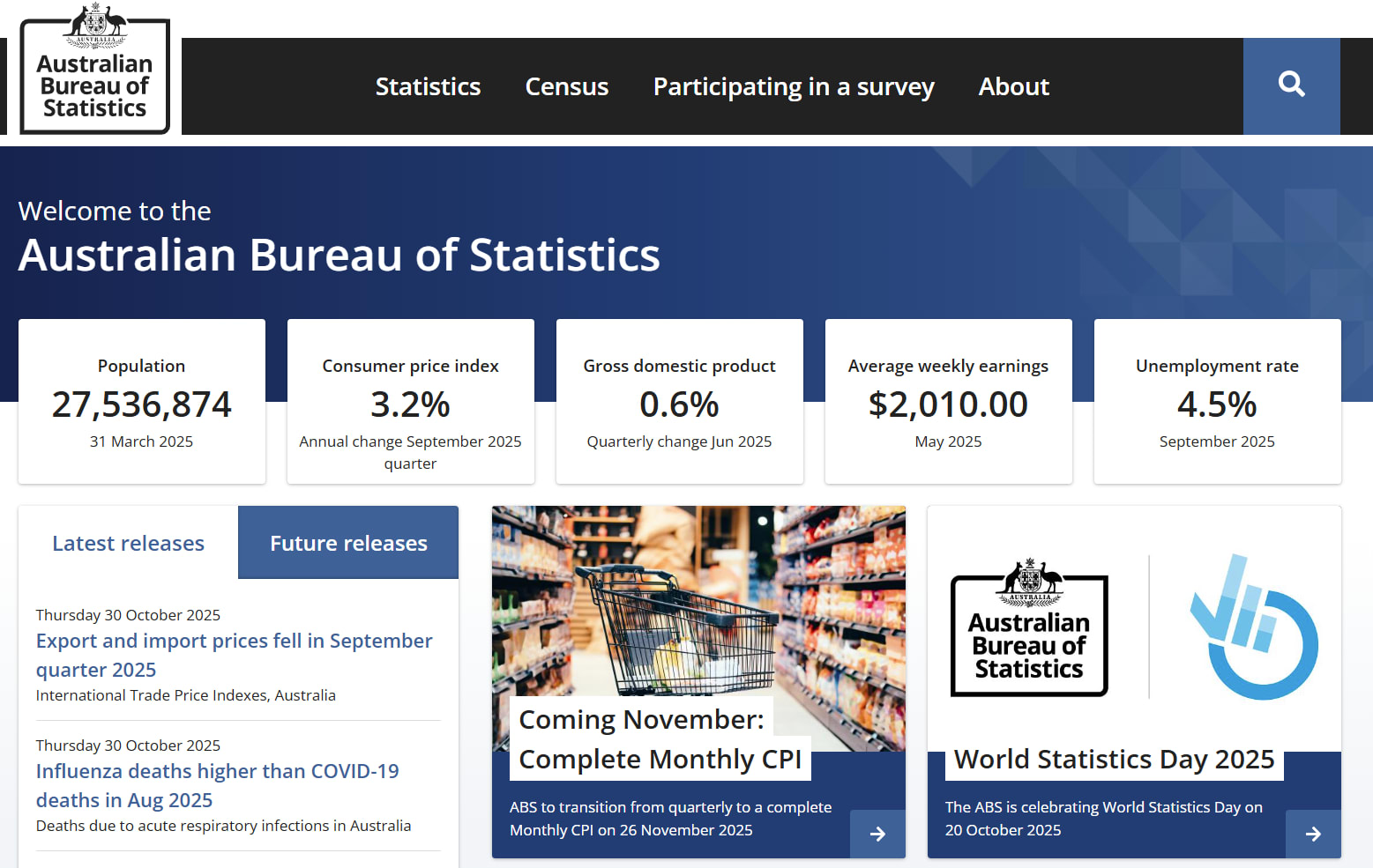 What the new BOM site almost gets right is the Consistency it provides with other government websites. The best direct comparison is the Australian Bureau of Statistics website. But even the ABS recognises that their main audience is data nerds, and has key statistics front and is centre with immediate access to vital economic and social reports.