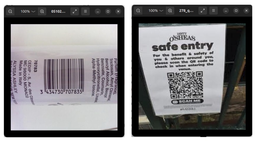{ "detection_threshold": 0.5, "max_boxes":200, "labels": [ "unlabeled", "barcode", "QR code" ] }Now, execute the following code: