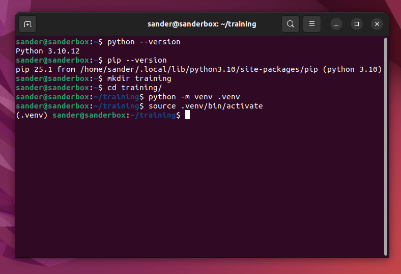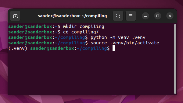 python -m venv .venv source .venv/bin/activateStarting a new terminal and folder is required because we need to use a different virtual environment to install the Hailo stuff.