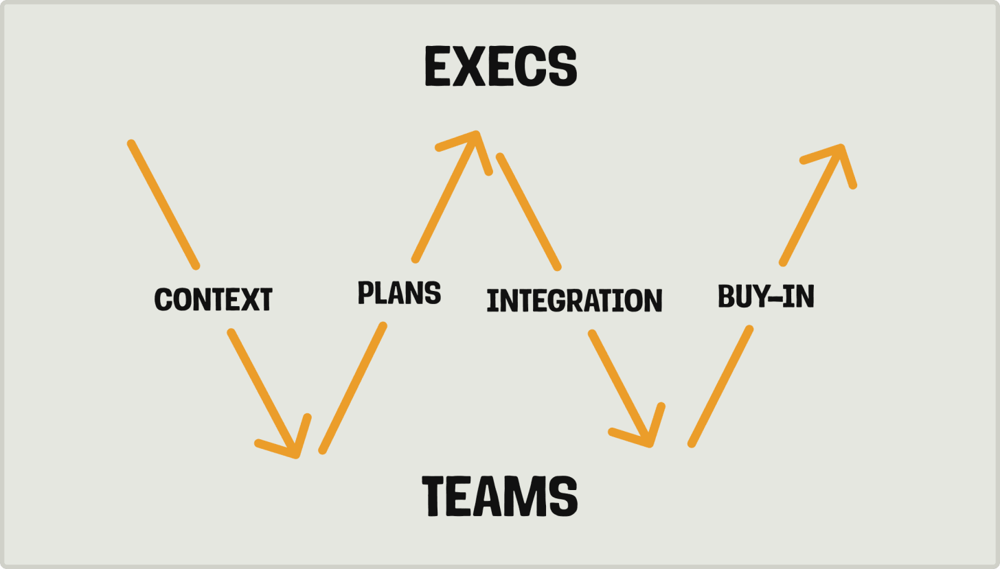 Integration: Execs add context from other teams, customers, and future plans. They make sure the plan is both realistic and ambitious enough. This usually happens just before or during the quarterly planning meeting.