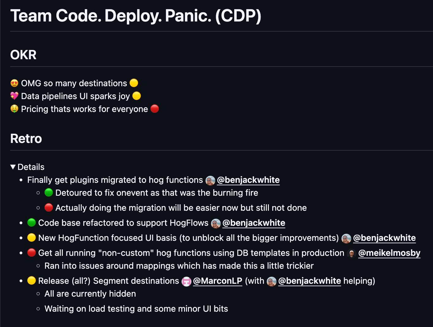 Some might say these goals are "too vague" or "don't count as OKRs." Our response is that they work for us 🤷♂️ and that's what really matters. These goals support our focus on shipping things and getting feedback from users rather than obsessing over wording or arbitrary metrics.