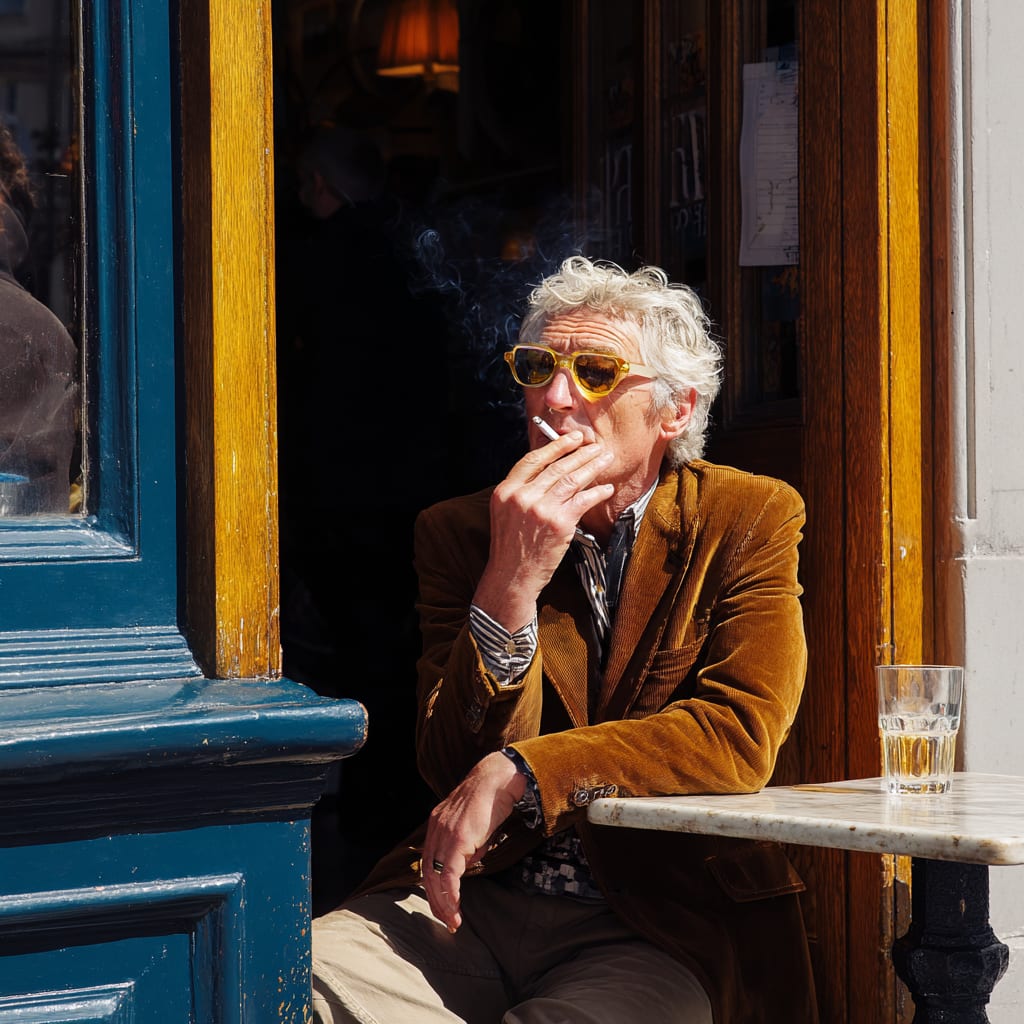 I am no longer young in body or mind, but in spirit I am still in the first flush of youth. I am drinking a pint and smoking a cigarette. In my working life, I am liable to sell you a credenza, but currently I am engaged in a leisurely activity, and I will enjoy it even more as I look while good doing it, watching the world go by.