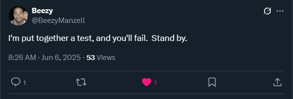 Well, one of the ways is to pass a test (not unlike a Turing Test… wait a minute…), which the Twitter user above kindly produced for me: